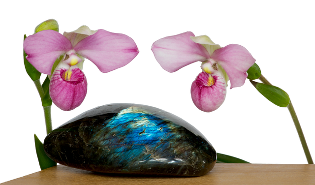 Contents: Stock Strength Orchid Essence made with Phragmipedium Eumelia Arias & Spectrolite / Labradorite.