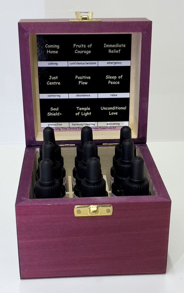 This mini kit of 9 essences comes in a purple wooden box. Great for a small gift or to start your journey with the Orchid Essences.